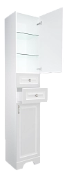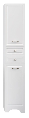 Пенал, который способен решить все основные задачи по компактному и удобному хранению в ванной комнате косметики, личных вещей, банных принадлежностей и бытовой химии. Вместительный и невероятно удобный, он оснащен двумя отделениями с полками и двумя выдвижными ящиками, поэтому успешно воплощает идею "все в одном месте". Его прочный и надежный фасад выполнен из МДФ и дополнительно покрыт пленкой ПВХ, обеспечивающей необходимую защиту от воздействия влаги, а поистине классический лаконичный дизайн делает пенал подходящим для любого интерьера - от традиционного до современного.