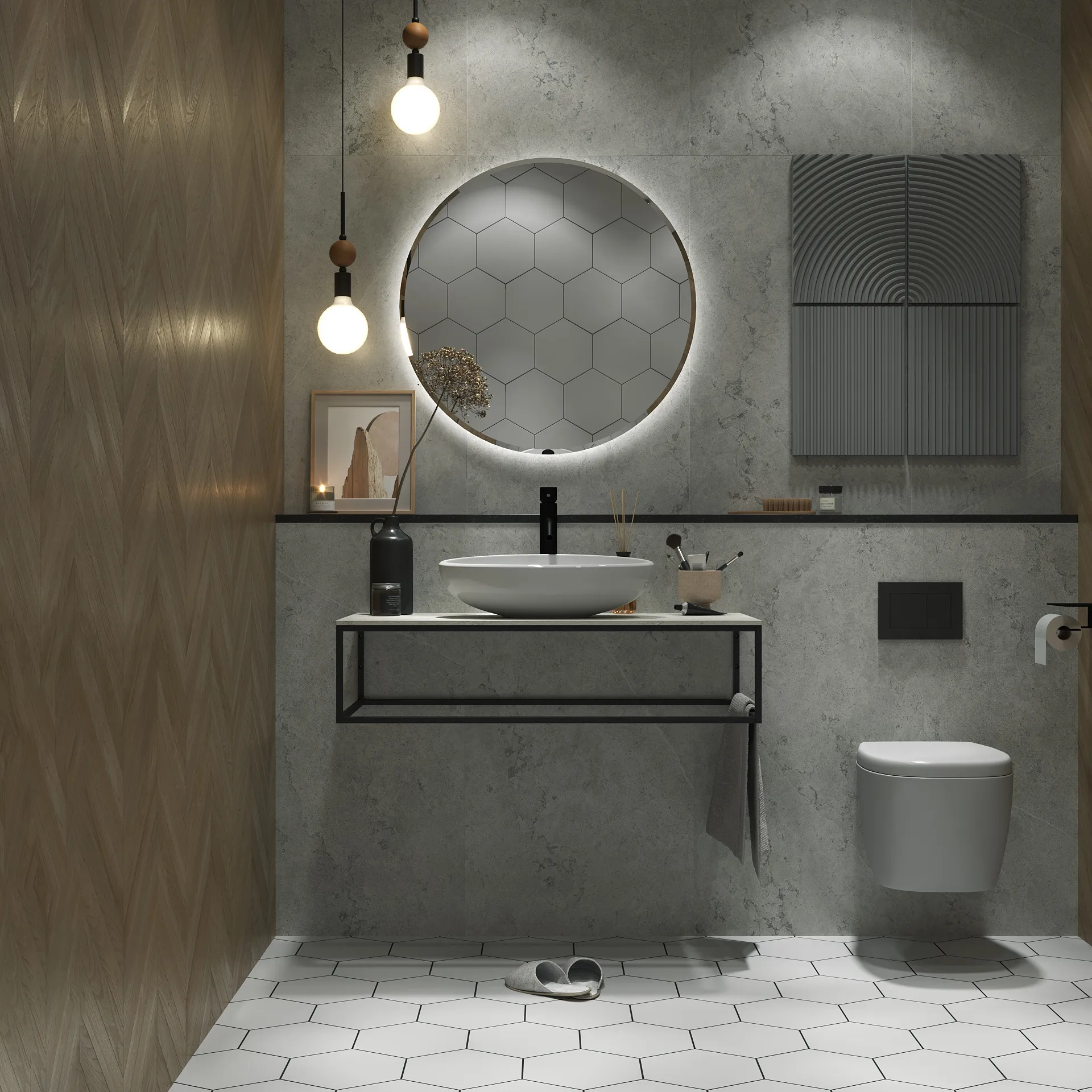 12 150 Р Тумба со столешницей ГРАНЖ ЛОФТ/GRUNGE LOFT 60П 1в.я бетон темно-серый