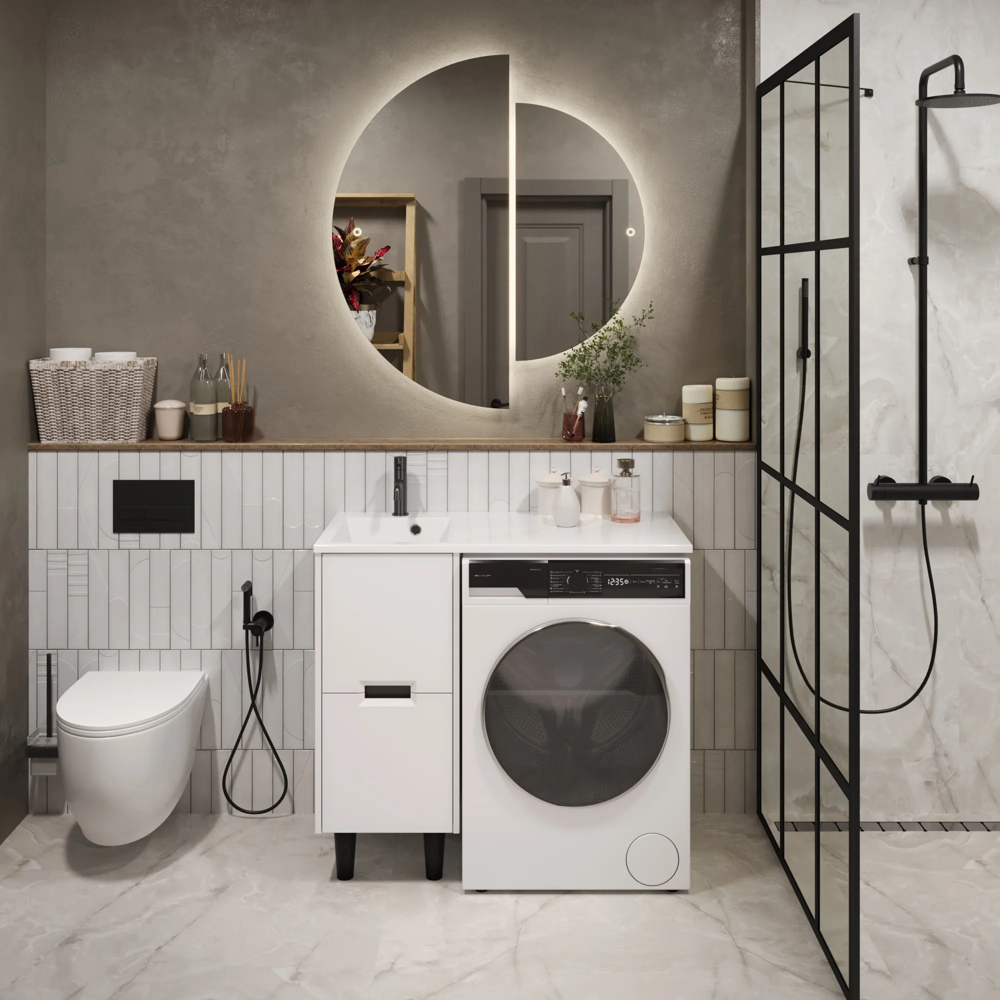 • Экономия пространства: Идеальное решение для ванной комнаты любого размера.