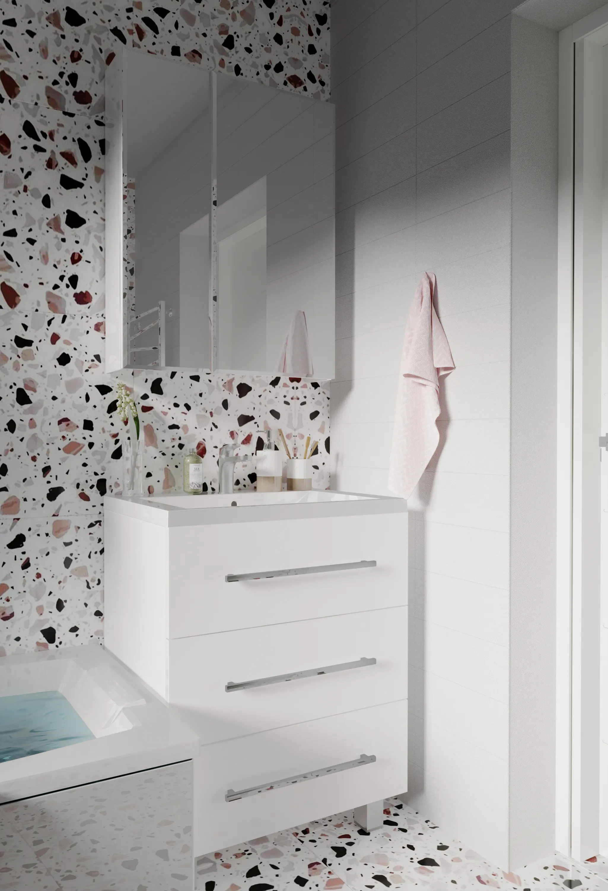 22 152 Р Тумба со столешницей СТЕЛЛА/Desire 600х487х500П 2я монолит айсберг/эмаль белая