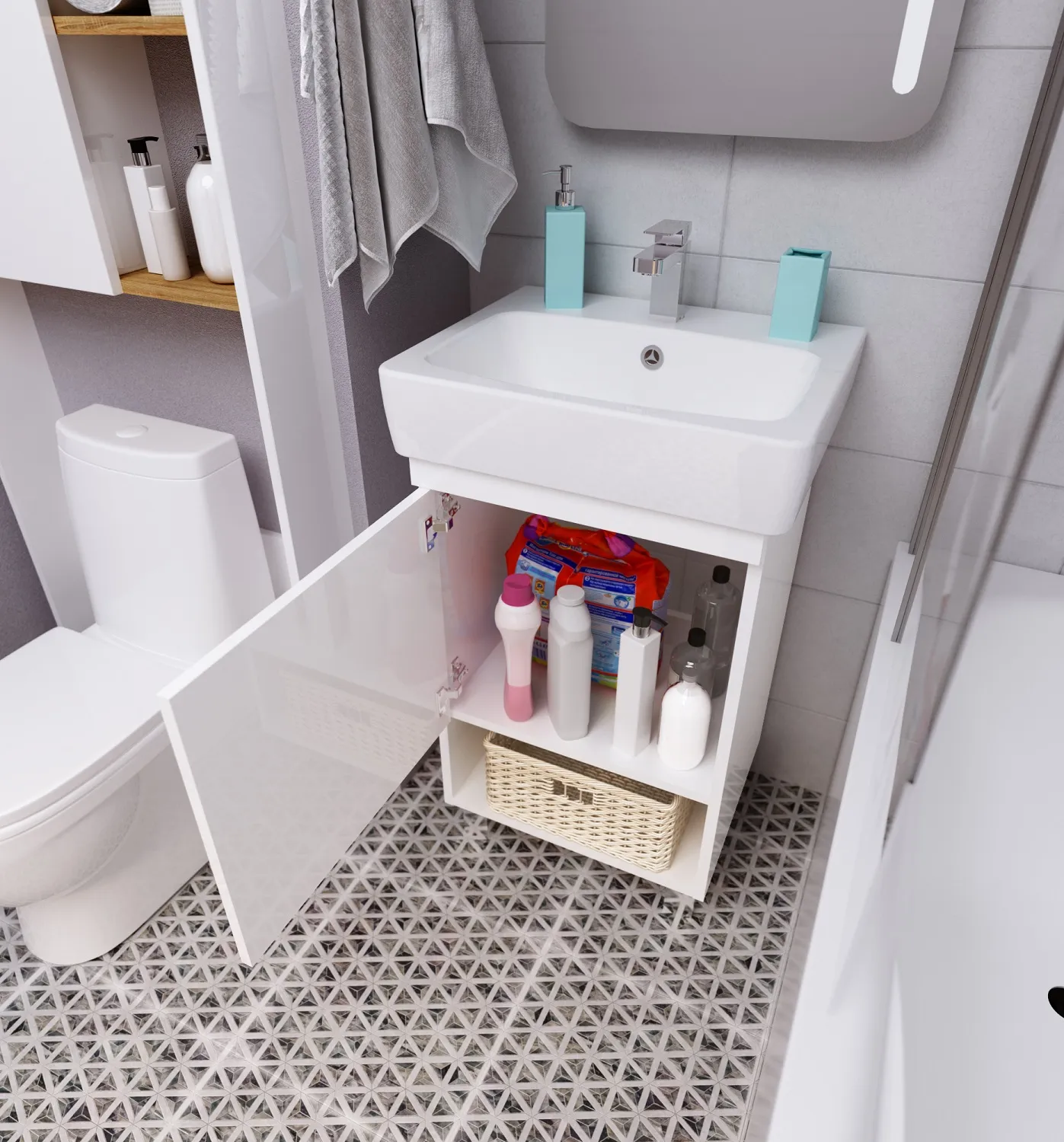 9 180 Р Тумба под раковину ТЕРА/Tera 55Н 1д. белый глянец