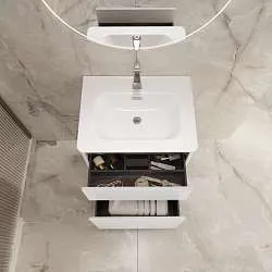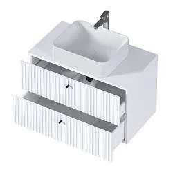 Белая подвесная тумба Veil под керамическую раковину*– минималистичная модель, созданная по актуальным тенденциям мебели для ванной. Благодаря универсальности, она подходит как для классических, так и для современных интерьеров. Матовый фасад, интегрированные ручки, белый цвет тумбы придают интерьеру легкости.Характеристики: