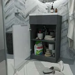 - тумба в комплекте с раковиной и сифоном-компакт: готовое решение для ванной комнаты;
