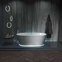 Ванна для современных или эклектичных интерьеров с оригинальным дизайном и продуманной до мелочей функциональностью. Доступна в размерах от 150 до 180 см.