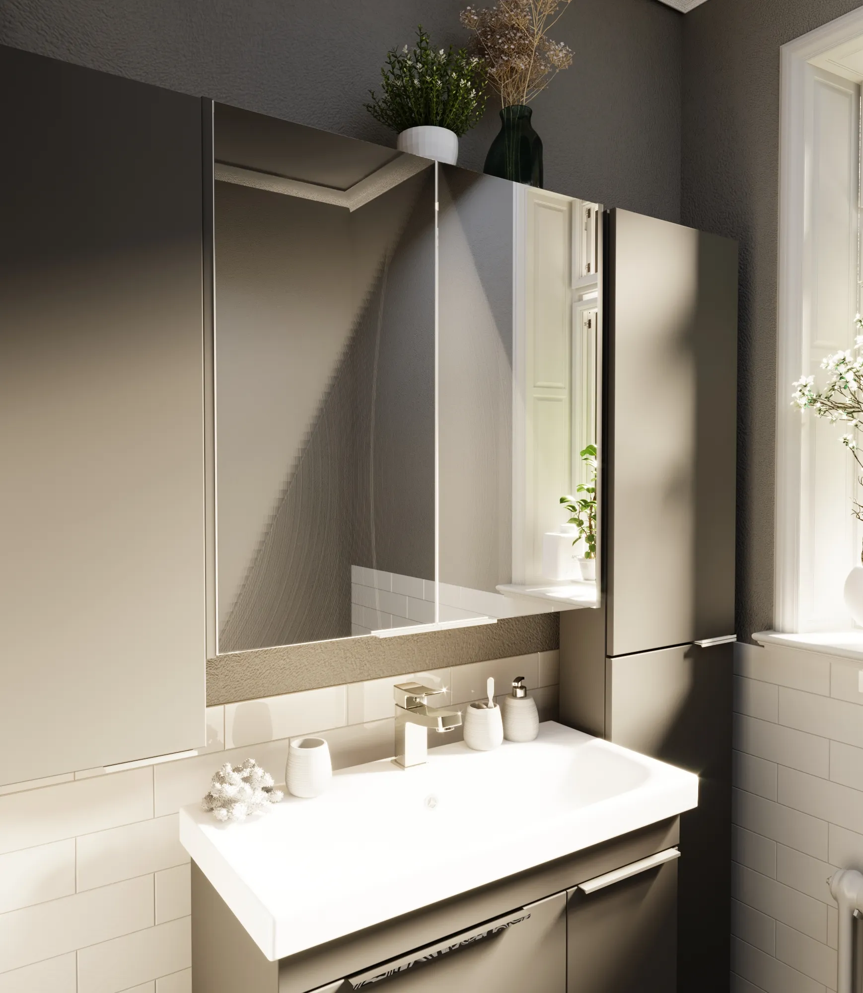 Двустворчатый зеркальный шкаф с лаконичным и одновременно эффектным дизайном создан для ванных комнат в любой стилистике. Он найдет свое место как в классическом пространстве, так в современной или эклектичной ванной комнате. Использование качественной фурнитуры обеспечивает плавную работу дверец и отсутствие посторонних шумов. Вместительные внутренние полки позволяют удобно организовать хранение косметики и личных принадлежностей, а лаконичность и минимализм внешнего вида шкафа соответствуют всем актуальным тенденциям в дизайне мебели и аксессуаров для ванной комнаты.