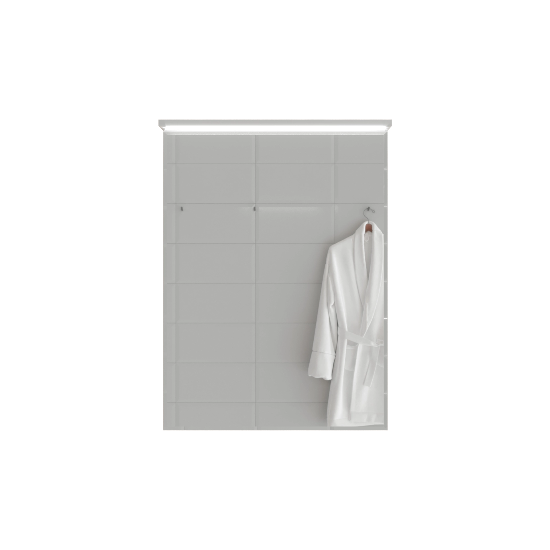 Зеркало-шкаф, в котором продумана каждая деталь. Лаконичный стильный дизайн делает его актуальным для ванной комнаты в любой стилистике и цветовой гамме. Исполнение корпуса из МДФ с покрытием белой влагостойкой пленкой обеспечивает его устойчивость к воздействию влаги и позволяет надолго сохранить первоначальную эстетику. Три вместительные внутренние полки идеальны для скрытого хранения косметики и аксессуаров, а верхняя подсветка не только делает использование зеркала-шкафа более комфортным, но и позволяет создавать в ванной комнате особенно уютную атмосферу.